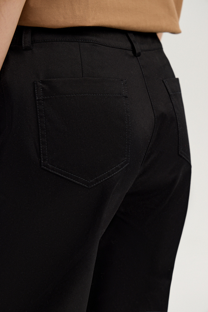 Глубокий чёрный цвет придаёт этим хлопковым брюкам строгий и современный характер. Прямой крой и высокая посадка подчёркивают силуэт, а премиальная ткань из 100% хлопка обеспечивает комфорт даже в жару. Сочетайте с белой рубашкой, мягким трикотажем или жакетом сафари из аналогичной ткани — для цельного образа.